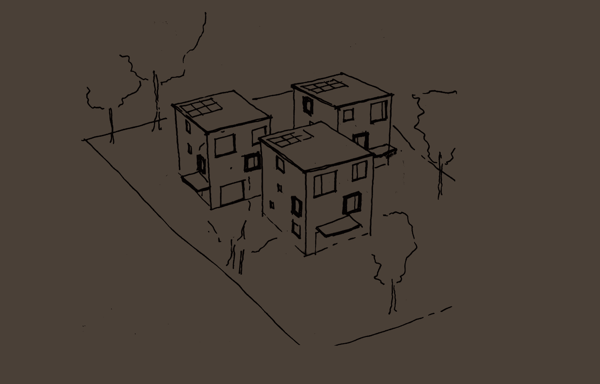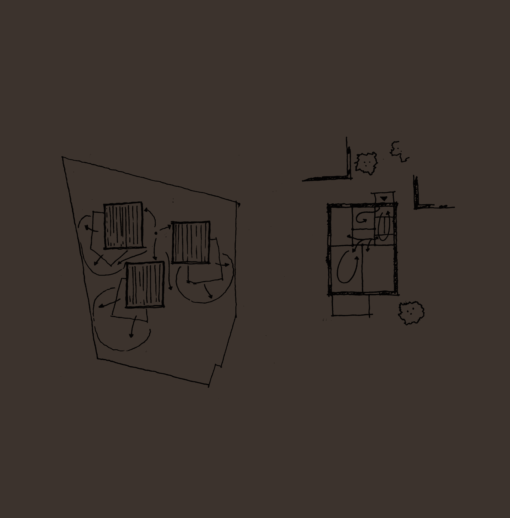 Drei kompakte Baukörper – Tamino, Papageno und Pamina – setzen sich wie skulpturale Monolithen in die Hanglage. Keine Geste, kein Spektakel. Eine klare, ruhige Präsenz, die im Dialog mit der Landschaft steht. Die Volumen wirken herausgearbeitet aus dem Terrain: monolithisch, gestaffelt, differenziert.