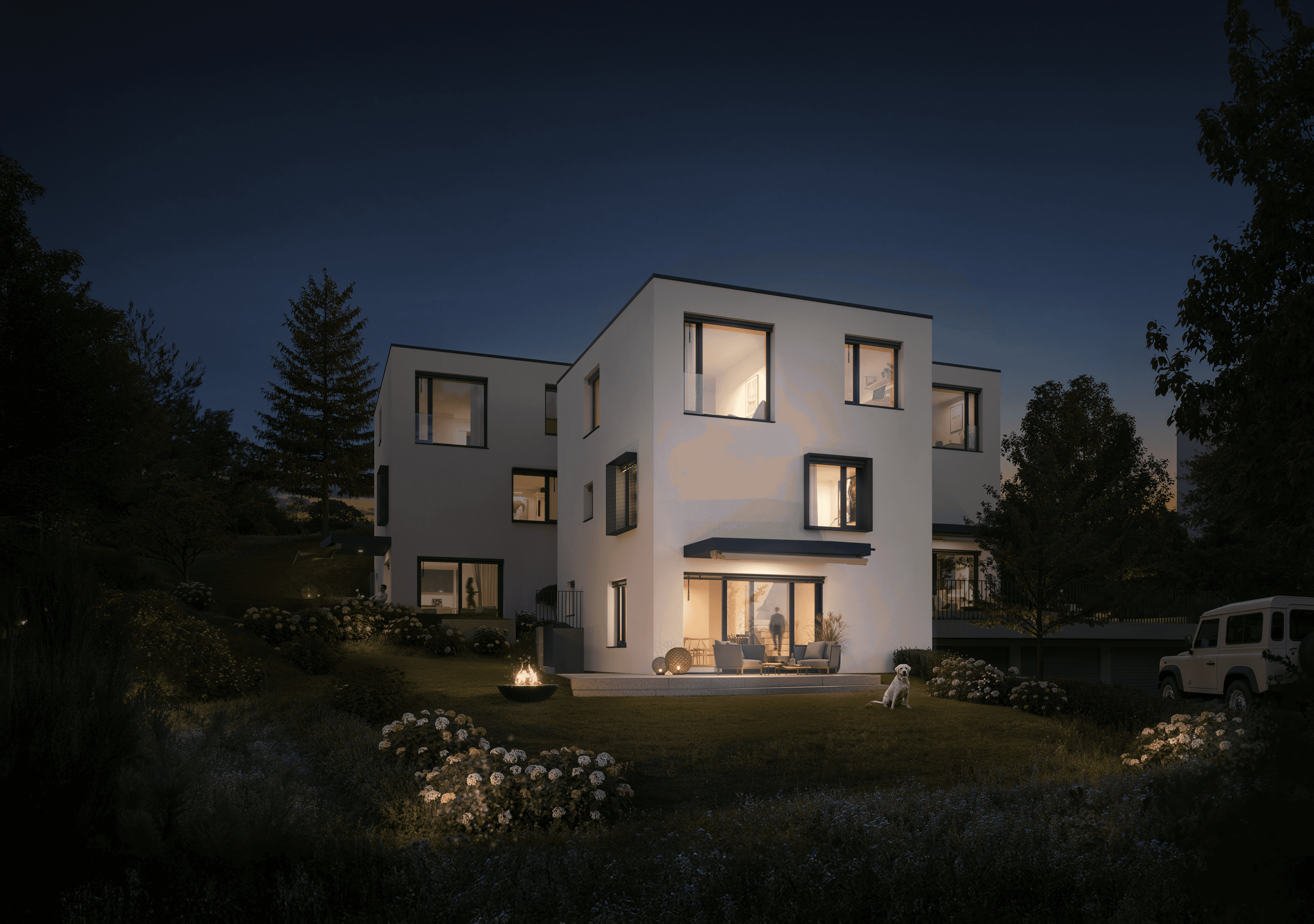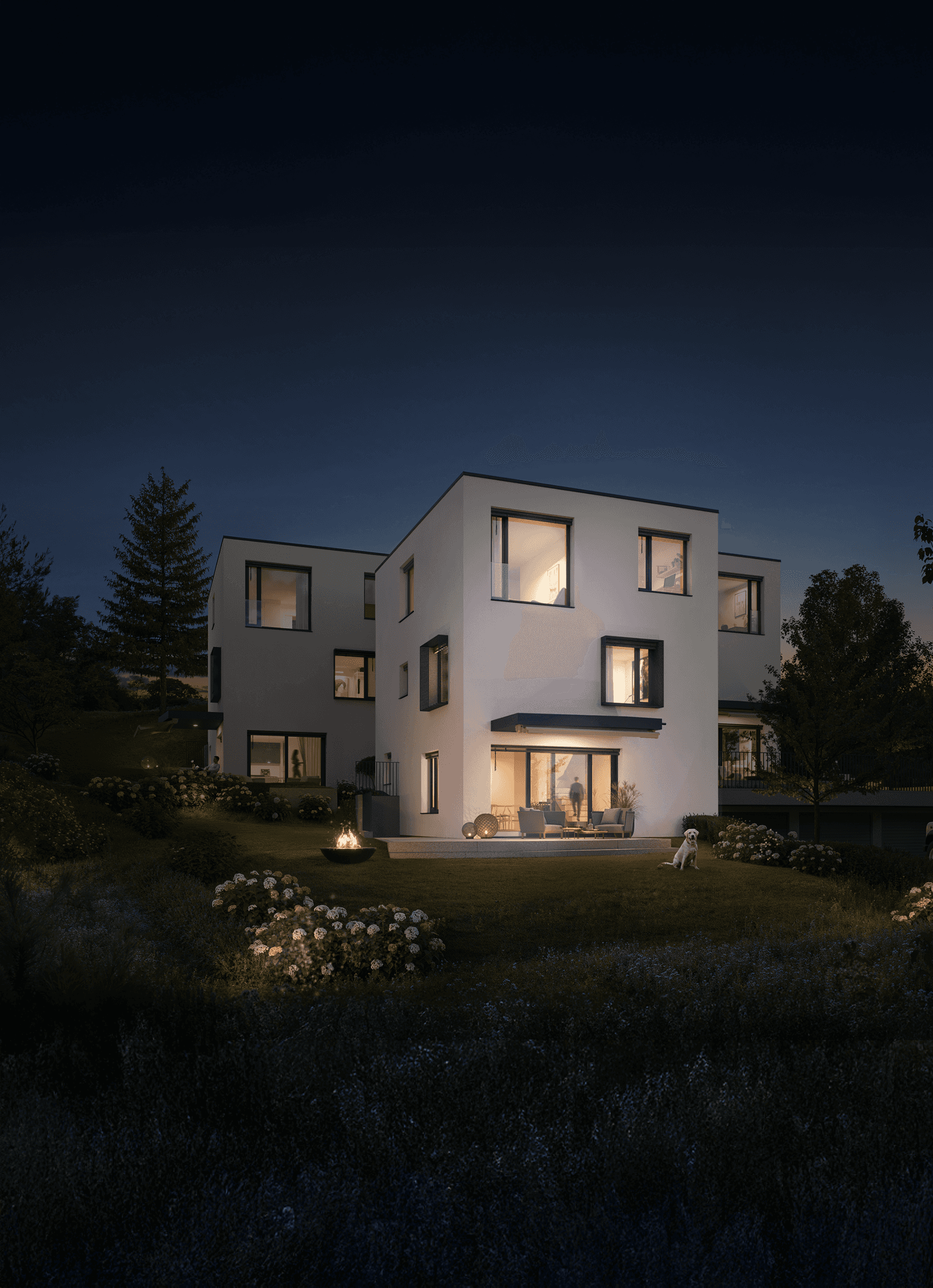 pro Haus 1 Garage (inkl. Anschluss E-Mobility-Ladestation) und 1 Aussenabstellplatz