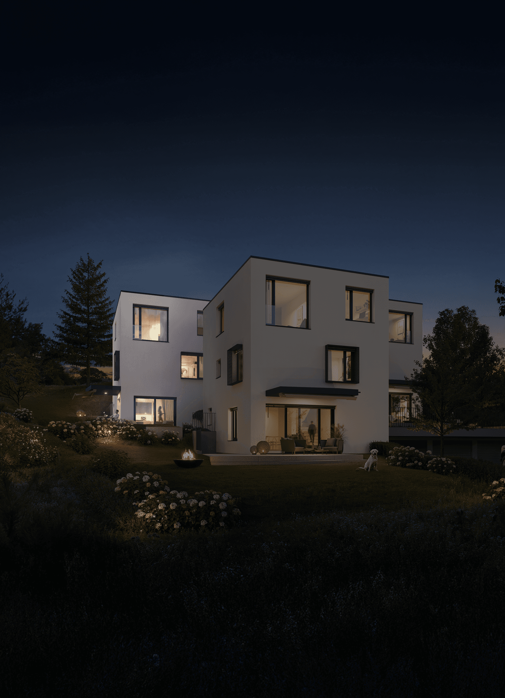 pro Haus 1 Garage (inkl. Anschluss E-Mobility-Ladestation) und 1 Aussenabstellplatz